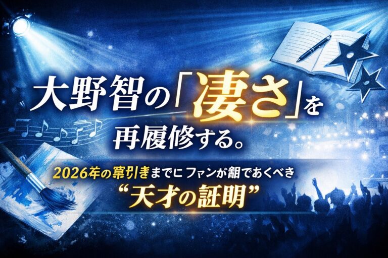 2025年、嵐の活動再開というニュースが日本中を駆け巡りました。 かつて彼らを追いかけていた日々を思い出し、胸を熱くした方も多いのではないでしょうか。 しかし、喜びと同時に「2026年5月の活動終了」という期限に対し、焦燥感や寂しさを抱えているかもしれません。 この記事では、エンタメ批評家として20年以上大野智という表現者を追い続けてきた私が、彼の「凄さ」を技術的・芸術的側面から改め […]