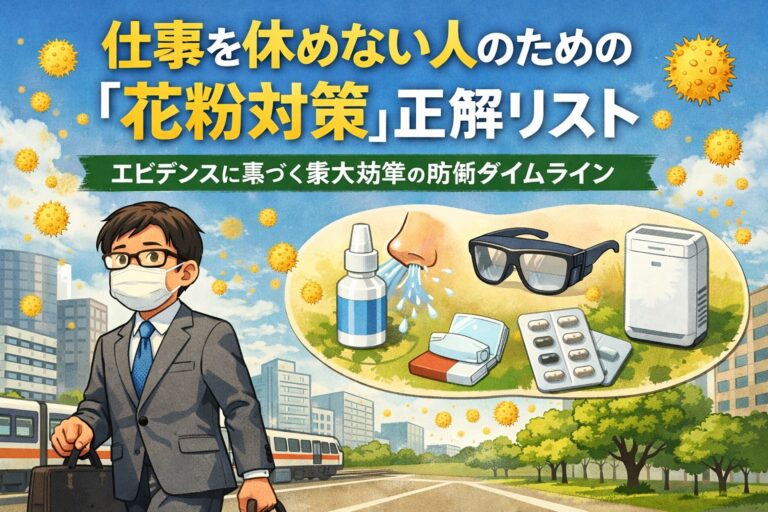 「花粉症くらいで病院に行くのは時間がもったいない」 そう考える多忙なあなたこそ、実はビジネスにおいて最も大きな損をしています。 産業医として多くのビジネスパーソンを見てきましたが、症状が出てから市販薬で凌ぐのと、飛散前に適切な「初期療法」を始めるのとでは、シーズン中の集中力に雲泥の差が出ます。 花粉症によるパフォーマンス低下は、単なる体調不良ではなく、あなたのキャリアにおける「目に見えない損失」で […]