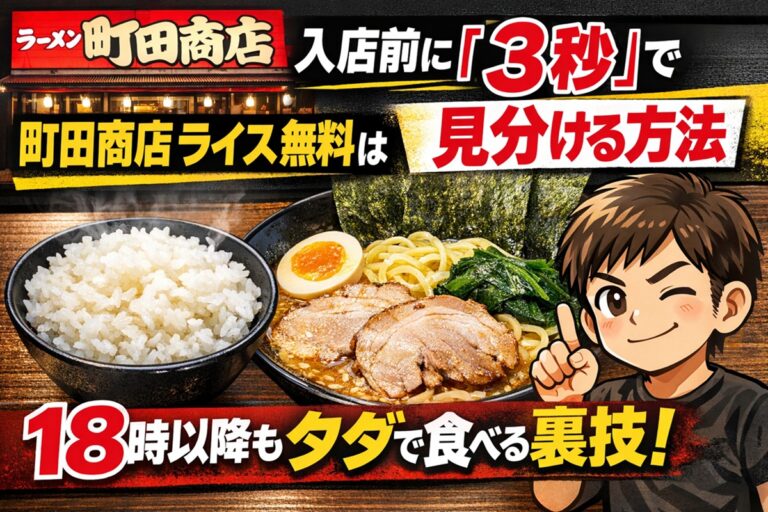 「今、目の前にある町田商店に入って、ライスを無料で腹一杯食べられるだろうか?」 暖簾をくぐろうとしたその瞬間、ふと不安になってスマホを握りしめているあなたへ。 かつては「町田商店=ライス無料」が当たり前でしたが、現在は原材料高騰の影響もあり、店舗や時間帯によってルールが複雑に分かれています。 せっかく入店したのに、券売機の前で「ライス100円」の文字を見て絶望する……そんな悲劇は今日で終わりにしま […]