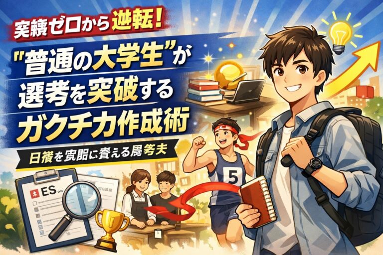 「学生時代に力を入れたこと(ガクチカ)を書いてください」 エントリーシート(ES)のこの項目を前にして、手が止まってはいませんか? 「サークルは幽霊部員だったし、バイトもただレジを打っていただけ。全国大会優勝や留学経験なんて一つもない……」 と絶望しているかもしれません。 しかし、安心してください。 企業がガクチカで求めているのは、あなたの「実績の大きさ」ではなく、入社後に活躍できる「再現性(思考 […]