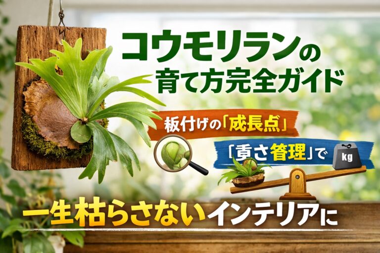 ショップで一目惚れして連れて帰ったコウモリラン。 しかし、数週間で葉が垂れてくると「自分には無理だったのかな」と不安になりますよね。 実は、僕も最初の1株を逆さまに板付けしてダメにしたことがあります。 コウモリラン(別名:ビカクシダ)は、その独特な形状ゆえに難しそうに見えますが、実は非常に丈夫な植物です。 大切なのは、彼らが野生でどう生きているかを知ること。 この記事では、植物生理に基づいた「失敗 […]