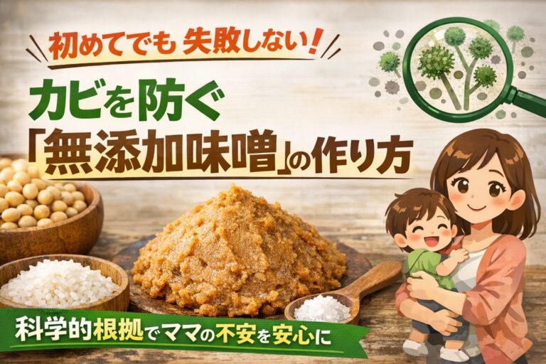 「子供には安全な無添加の味噌を食べさせたい。でも、手作りはカビが生えそうで怖い……」 そんな不安を抱えていませんか? 実は、私も初めての味噌作りで真っ黒なカビを生やし、ショックで数日間立ち直れなかった経験があります。 しかし、発酵の仕組みを科学的に理解してからは、一度も失敗していません。 味噌作りは「運」ではなく、「除菌」と「塩分管理」という2つのポイントさえ守れば、誰でも確実に成功させることがで […]