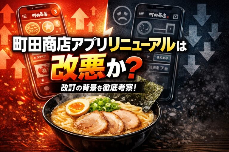 町田商店アプリがリニューアルされました。 結論から言うと、元々アプリユーザーだった人にとっては改悪と言えるかもしれません。 ただ、「改悪」と言う言葉だけでは片付けられない事情もありそうなので、当記事で考察なども含めて解説します。 [著者情報] 執筆:仁科 賢二(にしな けんじ) 町田商店 戦略的攻略家 / 元・大食い自慢のビジネスマン 10年間、週2回の町田商店通いを継続。完まく(スープまで完食) […]