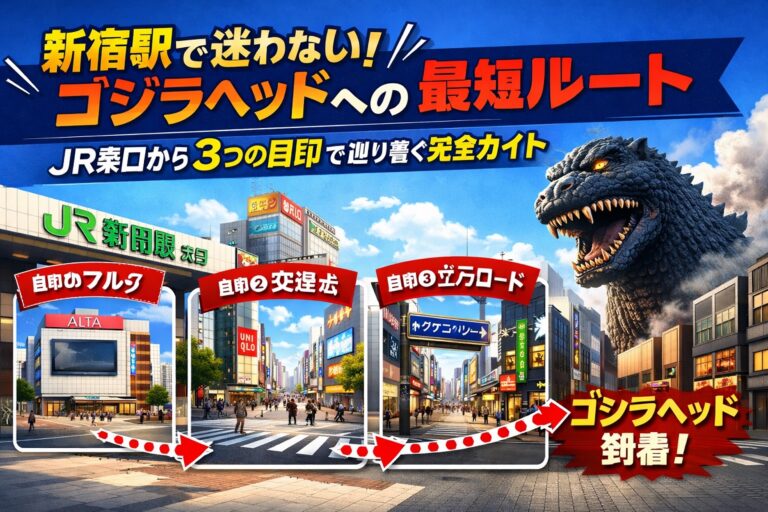 新宿駅は日本一の迷宮です。 慣れない人が地下で目的地を探すのは、目隠しで森を歩くようなもの。 でも安心してください。 実は『JR東口改札』を出て地上にさえ上がれば、あとはゴジラが見えるまで真っ直ぐ歩くだけなんです。 地図アプリを閉じて、僕と一緒に3つの目印だけを確認しましょう。これだけで、あなたはもう迷いません。 ✍️ 著者情報:新宿ナビゲーター・タクミ 新宿エリア専門ガイド / 元・新宿駅構内案 […]
