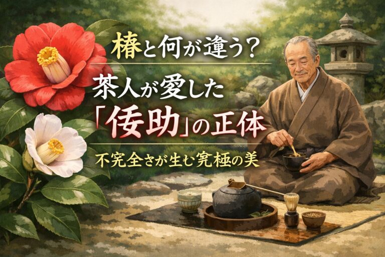 お稽古の床の間で、ふと目に留まる小さく可憐な花。それが「侘助(わびすけ)」です。 派手さはありませんが、侘助が一輪あるだけで、茶室の空気がふっと静まり返るような不思議な力があります。 「普通の椿とどこが違うの?」 「なぜこれほどまでに茶道の世界で大切にされるの?」 そんな疑問を抱いたことはありませんか? 実は、侘助が「茶花の女王」と称される理由は、植物学的な「不完全さ」にあります。 この記事では、 […]