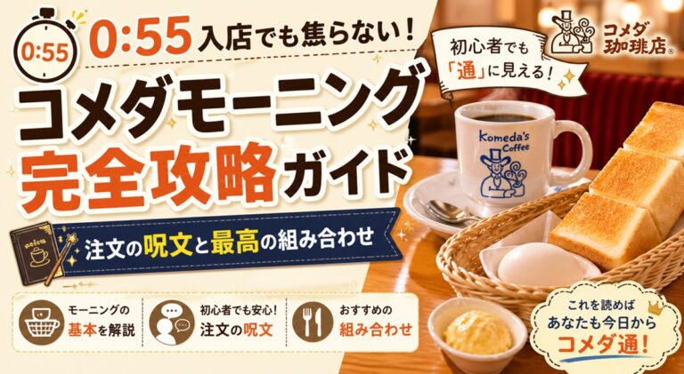 ✍️ 著者プロフィール:コメダ通のナオ 喫茶店巡り歴15年、年間300回以上コメダ珈琲店に通い詰めるライフスタイルライター。全メニュー制覇はもちろん、100通り以上のカスタマイズを試行。初めての方でも「街のリビング」としてコメダを使いこなせるよう、現場のリアルな情報をお届けします。 SNSで流れてきた、あの黄金色に輝く厚切りトーストの写真。 それを見て「今度の休みはコメダでモーニングデビューしよう […]