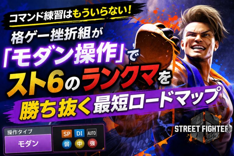 [著者情報] 執筆:ケンジ(田中 健二) 格闘ゲーム戦略アナリスト 延べ500人以上の「格ゲー初心者・復帰勢」を指導し、シルバーランク到達率90%を達成。自身も社会人プレイヤーとして、限られた時間で結果を出す「引き算の上達術」を提唱している。 YouTubeやTwitchで、ストリーマーたちが熱狂しながら『ストリートファイター6(スト6)』をプレイしている姿を見て、「自分もあんな風に動かせたら…… […]