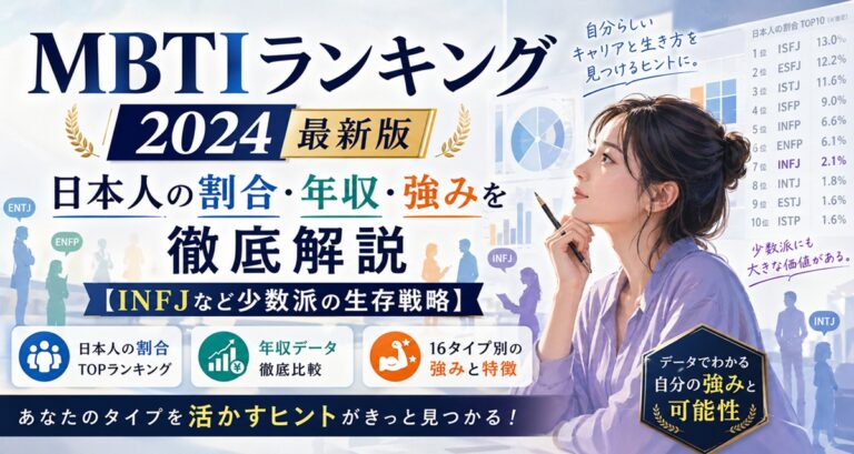 [著者情報] 一条 賢治(いちじょう けんじ) キャリアコンサルタント(国家資格)兼 MBTI認定ユーザー。15年間で3,000人以上のビジネスパーソンの自己分析を支援。「普通」に馴染めず悩む少数派の特性を、組織の「独自の武器」へと変換させる戦略的アドバイザー。 「職場のランチタイムにMBTIの話題で盛り上がったけれど、自分だけ『INFJ(提唱者)』という聞き慣れない結果で、周りにどう説明していい […]