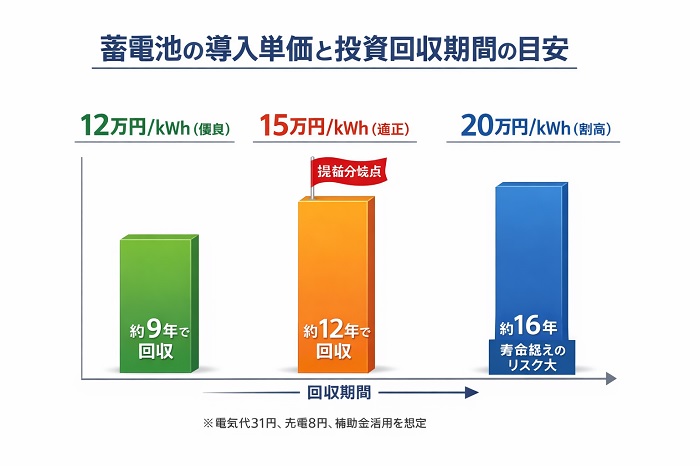 工事費込みの単価が「1kWhあたり15万円」を超えたら、その導入計画は一度立ち止まるべきです。