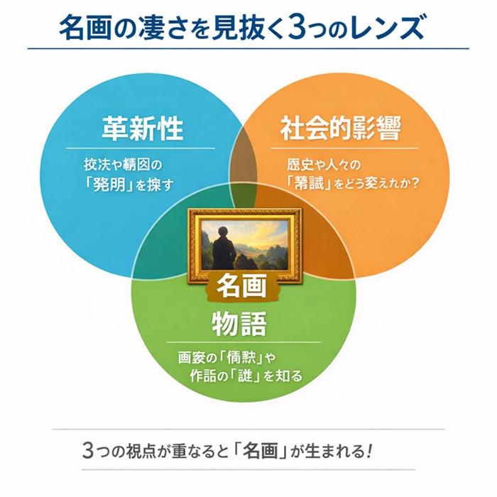 以下の3つの視点を持つだけで、あなたはどんな名画も自分の言葉で語れるようになります。