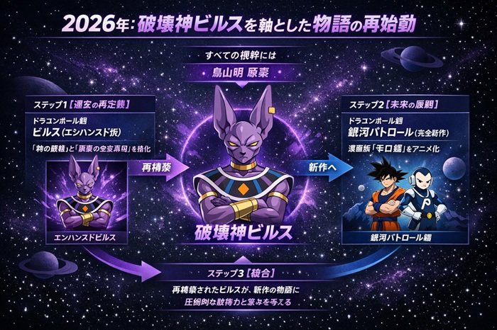 ここで重要なのは、先ほど解説した『ドラゴンボール超 ビルス(エンハンスド版)』と、この『銀河パトロール編』は、2026年のドラゴンボールを支える「両輪」の関係にあるということです。