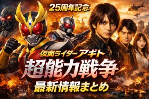 こんにちは!特撮ファンの皆様、ついに「あの日」の続きが動き出しました。 2001年に放送され、未だに根強い人気を誇る『仮面ライダーアギト』。 その25周年記念作品として発表された『仮面ライダーアギト 超能力戦争』。 「目覚めろ、その魂」のキャッチコピーから四半世紀。 最新情報を項目別に整理しました。 目次 1 1. 作品概要:Vシネクストか、それとも配信ドラマか?2 2. キャスト情報:オリジナル … 続きを読む 【25周年記念】『仮面ライダーアギト 超能力戦争』最新情報まとめ