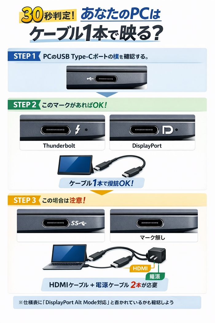 30秒で解決!あなたのPCで「ケーブル1本」が使えるかの見分け方