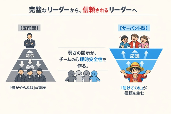 ルフィがそうであるように、リーダーの仕事は「全てを完璧にこなすこと」ではなく、「目的地を示し、仲間の力を信じ抜くこと」です。