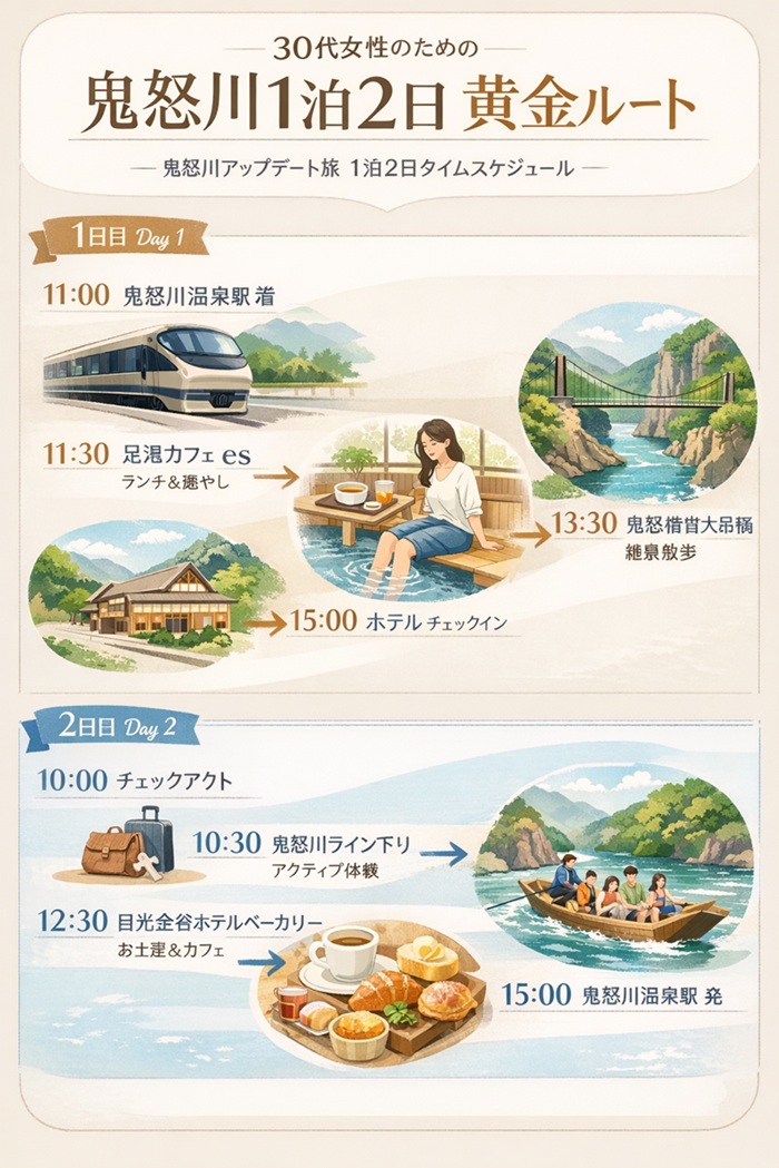 この記事では、車を使わず、公共交通機関だけでスマートに、そして最高に「今」を感じられる鬼怒川の歩き方をご紹介します。