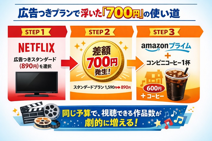 ここで、広告つきスタンダードプランを選ぶことで浮く「月額700円」の価値を再定義してみましょう。
