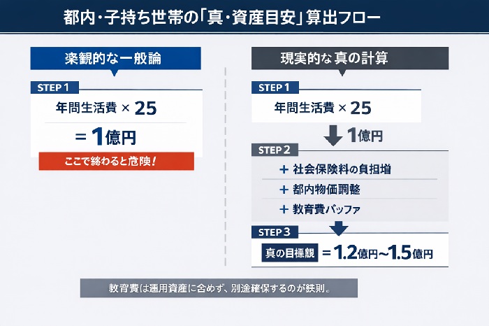 では、都内・子持ち世帯が「家族の質」を落とさずにリタイアするための、真の計算式はどうなるでしょうか。