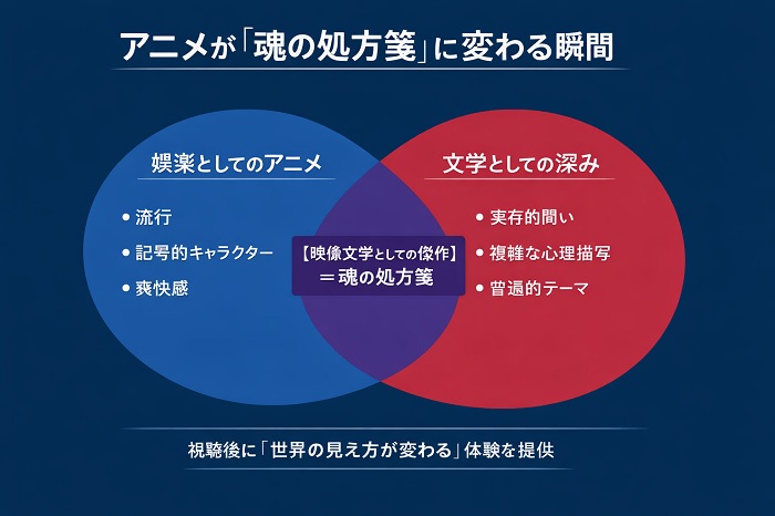これらの要素が組み合わさることで、アニメは単なる娯楽から、あなたの人生を支える「魂の処方箋」へと昇華されるのです。