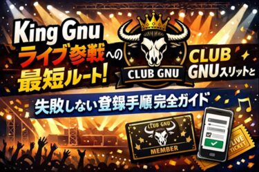 ✍️ 著者プロフィール:サトウ 音楽メディアライター。King Gnuの前身「Srv.Vinci」時代からのファンで、ファンクラブ「CLUB GNU」会員歴は7年。これまでの全ツアーに参戦し、チケットはすべてFC最速先行で確保。初心者が躓きやすいファンクラブのシステムや、ライブ遠征のノウハウを分かりやすく解説することに定評がある 「King Gnuのライブツアーが発表された!でも、SNSを見ると『 … 続きを読む King Gnuライブ参戦への最短ルート!CLUB GNU(クラブヌー)入会メリットと失敗しない登録手順完全ガイド