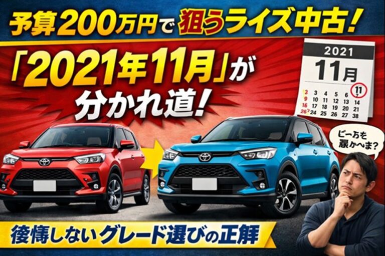 [著者情報] ✍️ 執筆者:車選びのプロ・タクミ 中古車売買アドバイザー(業界歴15年) これまで3,000台以上の査定と販売に携わり、数多くのファミリーの車選びをサポート。「スペック表の数字よりも、その車で生活がどう豊かになるか」をモットーに、現場のリアルな知見を発信中。 「今の軽自動車だと家族3人でキャンプに行くには狭すぎる。でも、ヤリスクロスやカローラクロスは予算オーバーだし……」 車検が近 […]