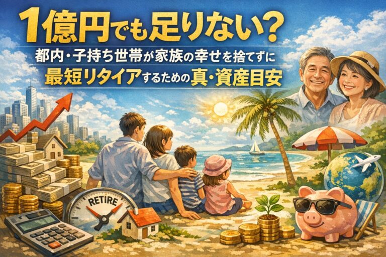 日曜日の夜、翌朝の進捗会議に向けた資料を修正しながら、「この生活をあと20年も続けるのか……」と、出口のない閉塞感に押しつぶされそうになっていませんか? SNSで流れてくる「資産1億円でFIRE達成」という景気のいい言葉。 しかし、都内で暮らし、守るべき家族がいるあなたにとって、その数字はあまりに現実味を欠いているかもしれません。 実際、一般論としての「1億円」を鵜呑みにしてリタイアし、数年で家計 […]