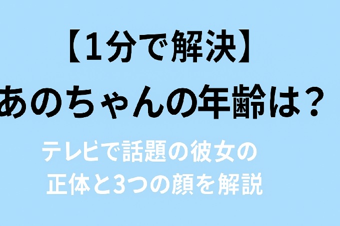 テレビであのちゃんを見かけて、ふと「この子、何歳?」って気になりますよね。 その独特な雰囲気、一体何者なんだろう?と思うのも無理はありません。 この記事では、そんなあなたの疑問に1分で答えます。 結論から言うと、あのちゃんの年齢は現在28歳(2025年現在)です。 さらに、なぜ年齢がバレたのか?という経緯から、多くの人が知らない「タレント・アーティスト・元アイドル」という彼女の3つの顔まで、どこよ […]