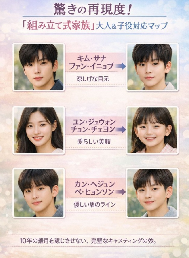『組み立て式家族』の第1話から第2話にかけて、視聴者を驚かせたのが子役たちのキャスティングです。