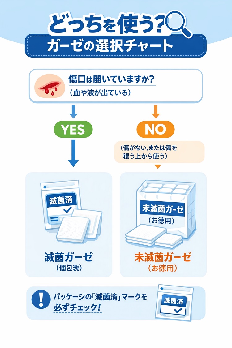 この2つを正しく使い分けることが、失敗しないガーゼ生活の第一歩です。