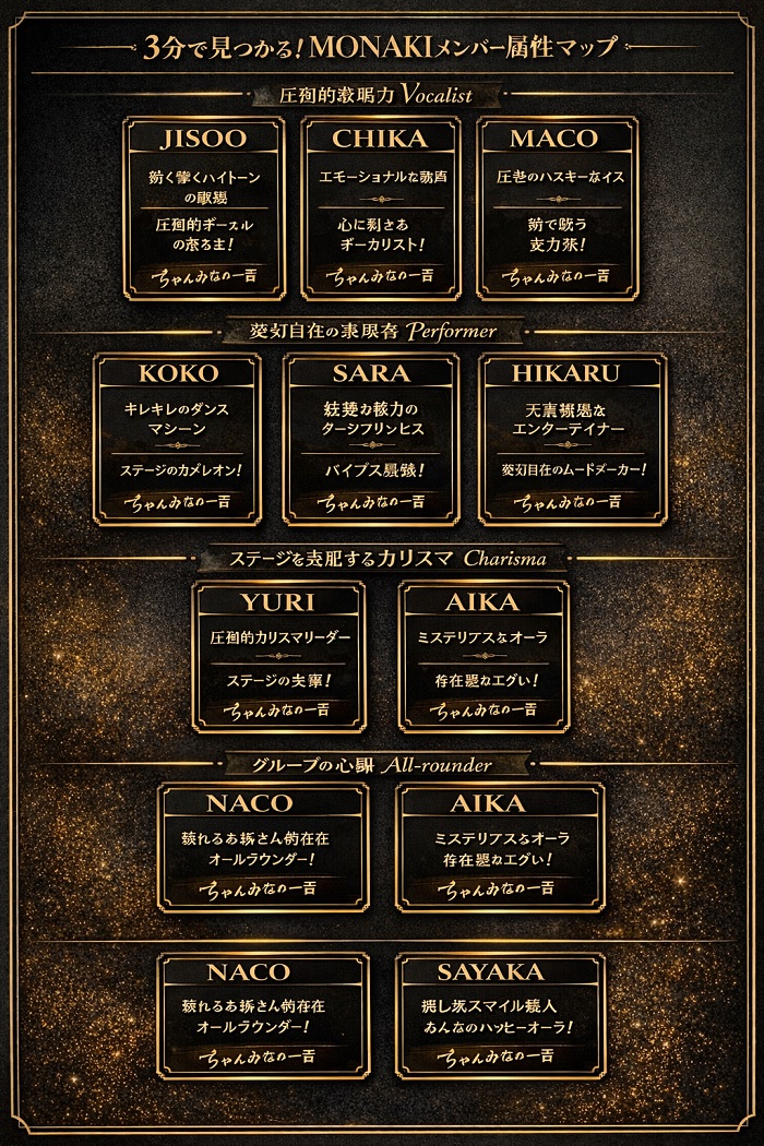 なぜなら、MONAKIのメンバーは全員が一度「No」と言われた過去を持っており、その悔しさをバネにした表現こそが彼女たちのアイデンティティだからです。スペックを暗記するよりも、彼女たちの「逆襲のストーリー」に共感することが、沼にハマる最短ルートです。