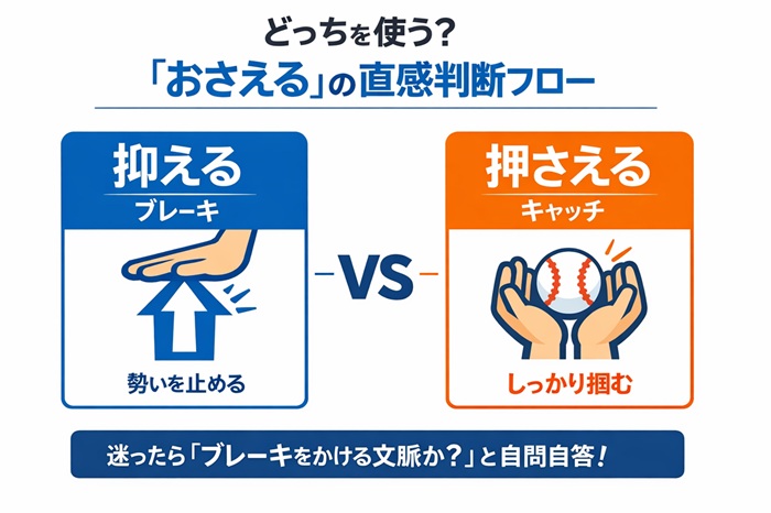「抑える」はブレーキ、「押さえる」はキャッチ。