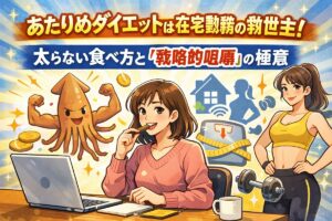 [著者情報] 執筆者:管理栄養士・ダイエットコーチ 結衣(ゆい) 在宅ワーカー専門のダイエットアドバイザー。1,000人以上の在宅勤務者の食事改善を指導。自身も在宅勤務中の激太りを「あたりめ」を活用した習慣で克服した経験を持つ。「賢く食べて、心も体も満たす」をモットーに、科学的根拠に基づいた無理のないダイエット法を発信中。 午後のデスクワーク中、ふと手が伸びてしまうチョコレートやクッキー。その一口 … 続きを読む あたりめダイエットは在宅勤務の救世主!太らない食べ方と「戦略的咀嚼」の極意