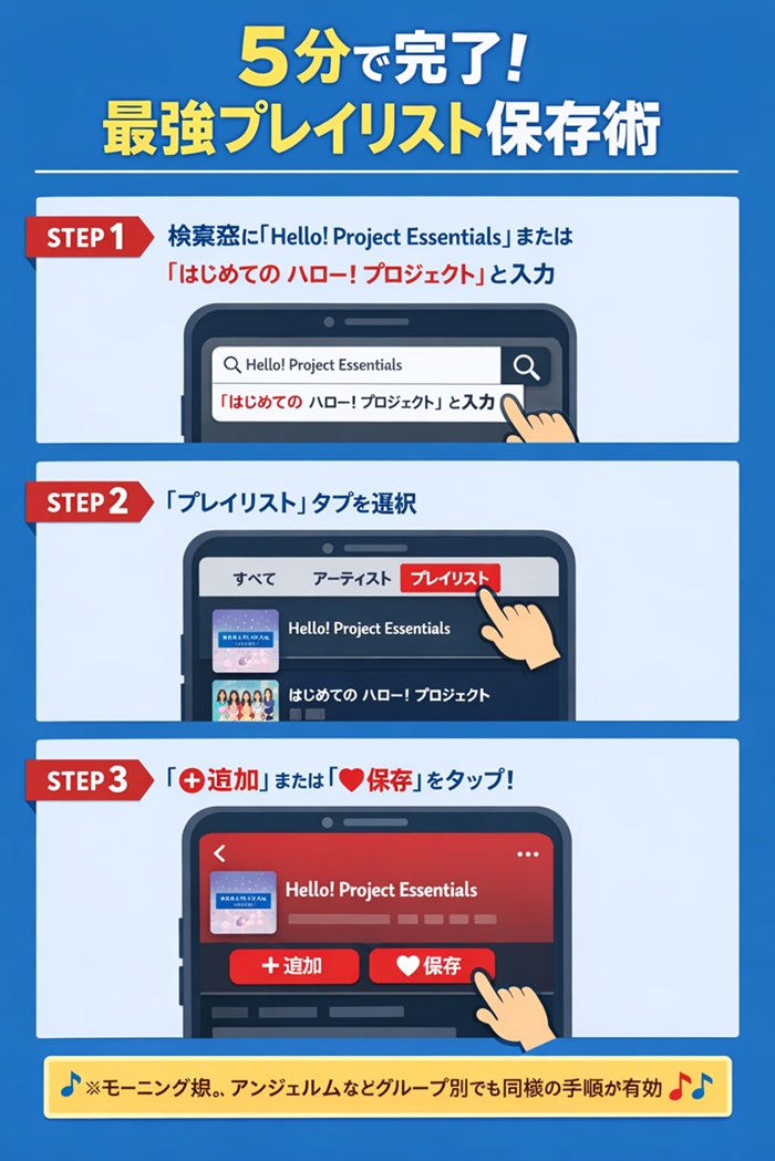 なぜなら、単に「モーニング娘。」と検索すると、25年分のシングルとアルバムがバラバラに表示され、どれが代表曲なのか判別できなくなるからです。公式がキュレーションしたプレイリストなら、黄金期のヒット曲から最新の注目曲までが、音楽的な流れを考慮して配置されています。