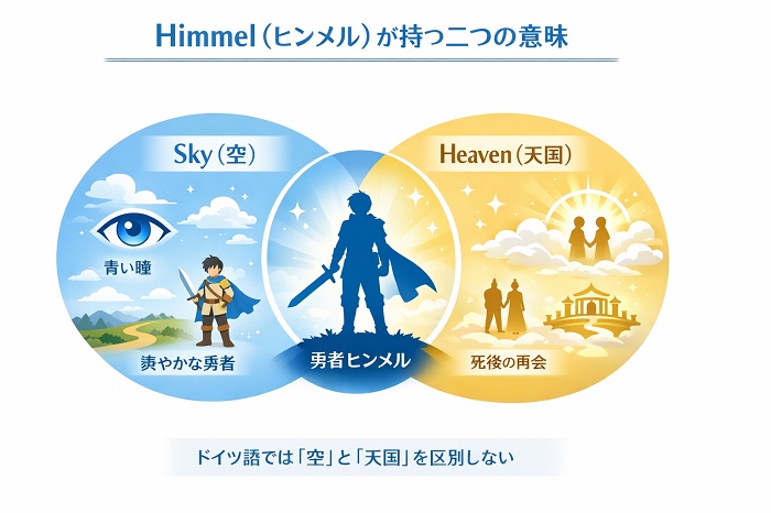 この「空と天国が同一である」という言語的背景は、勇者ヒンメルのキャラクター設計に極めて論理的な一貫性を与えています。