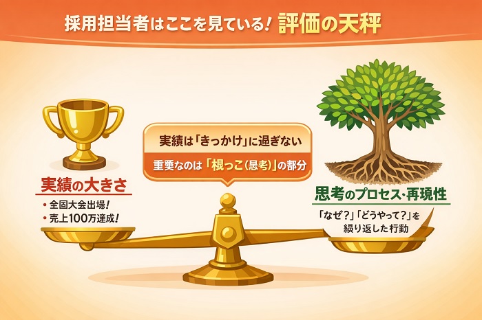多くの学生が「凄い実績がないと落とされる」と誤解していますが、採用担当者の視点は異なります。
