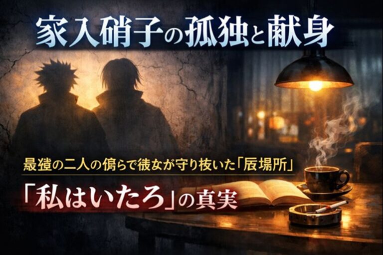 この記事では、単なる設定解説を超え、最新話で明かされた独白『私はいたろ』を軸に、家入硝子が背負い続けた孤独と、彼女が守り抜いた「最強の二人のための居場所」の真実を紐解きます。