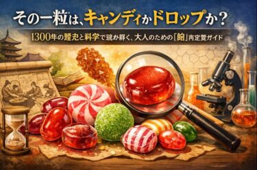 「佐藤さん、それドロップじゃなくてキャンディですよ」 職場のデスクで何気なくのど飴を口にしたとき、同僚からそんな冗談めいた指摘をされて、言葉に詰まってしまったことはありませんか? 「飴とキャンディ、それにドロップ……結局何が違うんだ?」と。 日常に溶け込みすぎている「飴」という存在。 しかし、その一粒の裏側には、1300年にわたる日本の食文化の変遷と、現代の厳格な法規制が複雑に絡み合っています。 … 続きを読む その一粒は、キャンディかドロップか? 1300年の歴史と科学で読み解く、大人のための「飴」再定義ガイド