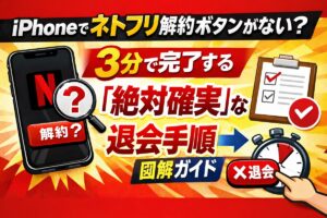 「iPhoneのNetflixアプリを開いて、設定を隅々まで探しても『解約』の文字が見当たらない……。」 実は、多くのiPhoneユーザーがこの「仕様の罠」に直面し、イライラを募らせています。 私も初めてNetflixの解約を試みた際、アプリ内を何往復もして時間を無駄にした経験があります。 結論から申し上げますと、NetflixのiOSアプリ内に解約ボタンが存在しないのは正常な状態で … 続きを読む iPhoneでネトフリ解約ボタンがない?3分で完了する『絶対確実』な退会手順図解ガイド