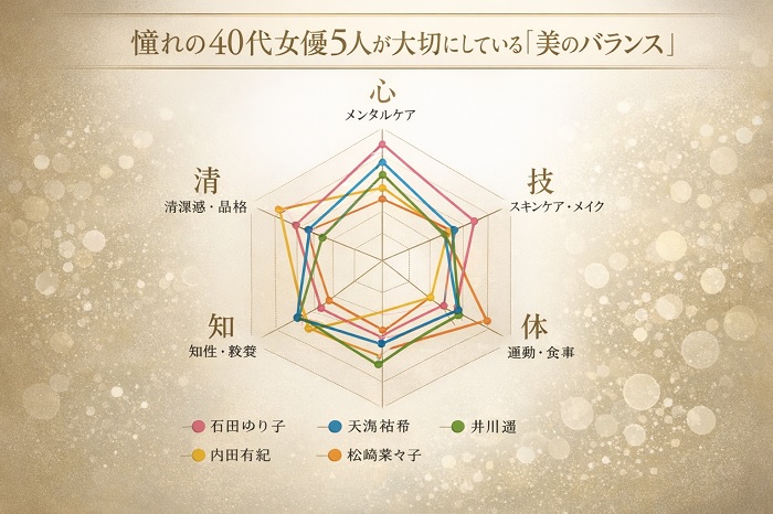 40代女優たちの輝きは、決して手の届かない魔法ではありません。