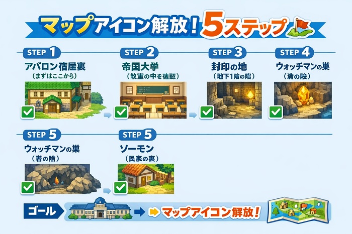 これでマップアイコン機能が解放され、あなたの探索効率は「解説者モード」から「無双モード」へと進化します。