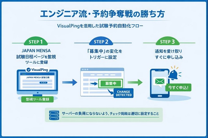 エンジニアスキルで突破する「予約争奪戦」。VisualPing活用術と海外模試の極意