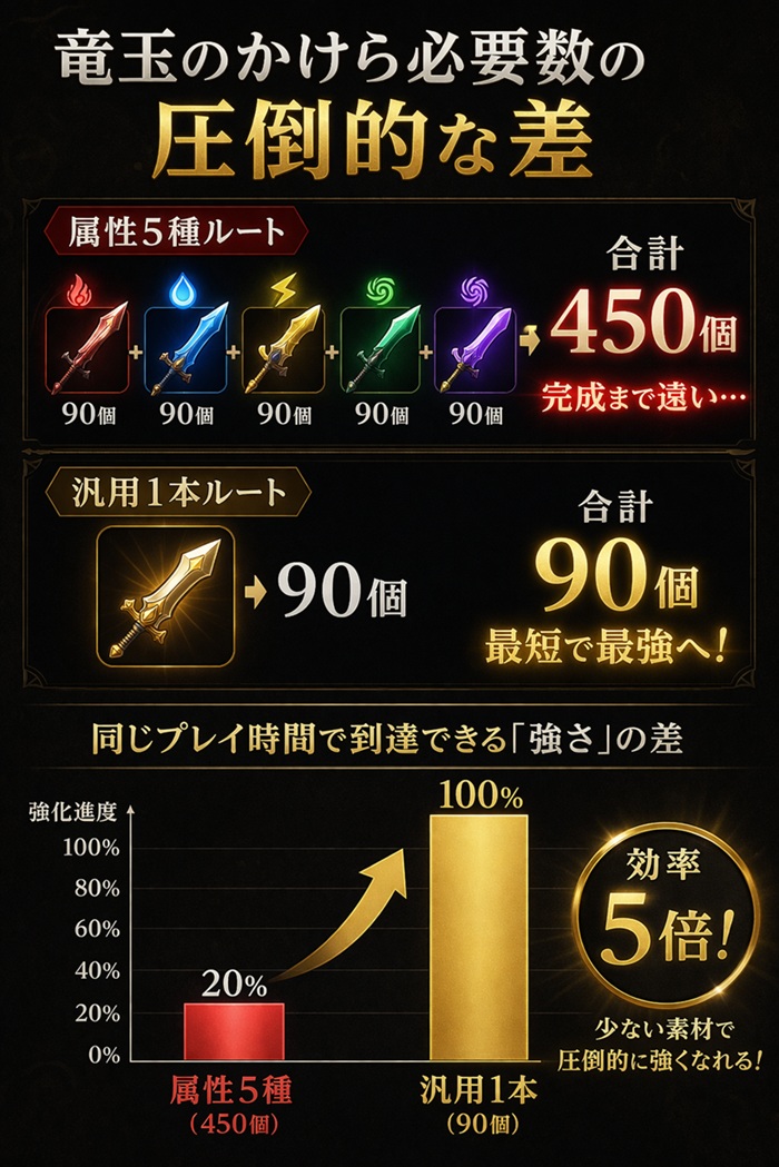 最大の理由は、最重要素材である「竜玉のかけら」の要求量です。