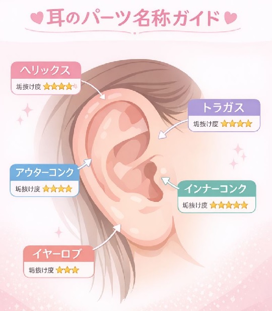 | トラガス | 4 | 6ヶ月〜1年 | 医療機関での施術を強く推奨。イヤホンに干渉。 |