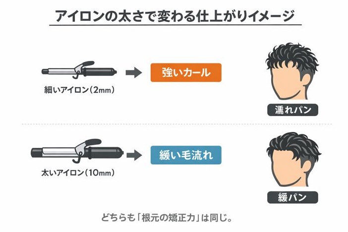 | アイロンの太さ | 1.8mm 〜 4mm | 8mm 〜 12mm以上 |
