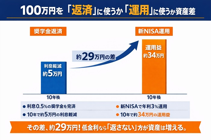 「年利0.3%の借金を返すこと」と「年利3%で運用すること」を比較すれば、どちらが資産を増やすかは明白です。