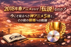 [著者情報] 執筆:サイトウ(アニメ・アーカイブ・ストラテジスト) 元アニメ誌編集者。視聴歴20年、年間300本以上のアニメを網羅し続ける「アニメの語り部」。単なる作品紹介に留まらず、メディアミックス展開や業界動向を含めた多角的な分析を得意とする。 ペルソナへのスタンス: 忙しい日々を送る大人のアニメファンへ、限られた時間で「最高の文脈」を味わうための最短ルートを提示します。 最近、SNSのタイム … 続きを読む 2018年春アニメはなぜ「伝説」なのか?今こそ見るべき神アニメ5選と、その後の覇権への軌跡