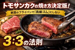トモサンカクの焼き方決定版!家庭のフライパンで「高級ゴム」にしない3:3の法則