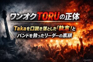「最近ONE OK ROCK(ワンオク)を好きになったけれど、ギタリストのTORUさんってどんな人なんだろう?」 ステージでクールにギターをかき鳴らすTORUさんの姿を見て、そんな疑問を抱いた方も多いのではないでしょうか。 一見すると完璧で隙のないカリスマに見えるTORUさんですが、その歩みは決して平坦なものではありませんでした。 結論から言えば、今のONE OK ROCKが存在するのは、リーダー … 続きを読む ワンオクTORUの正体|Takaを口説き落とした『執念』とバンドを救ったリーダーの素顔