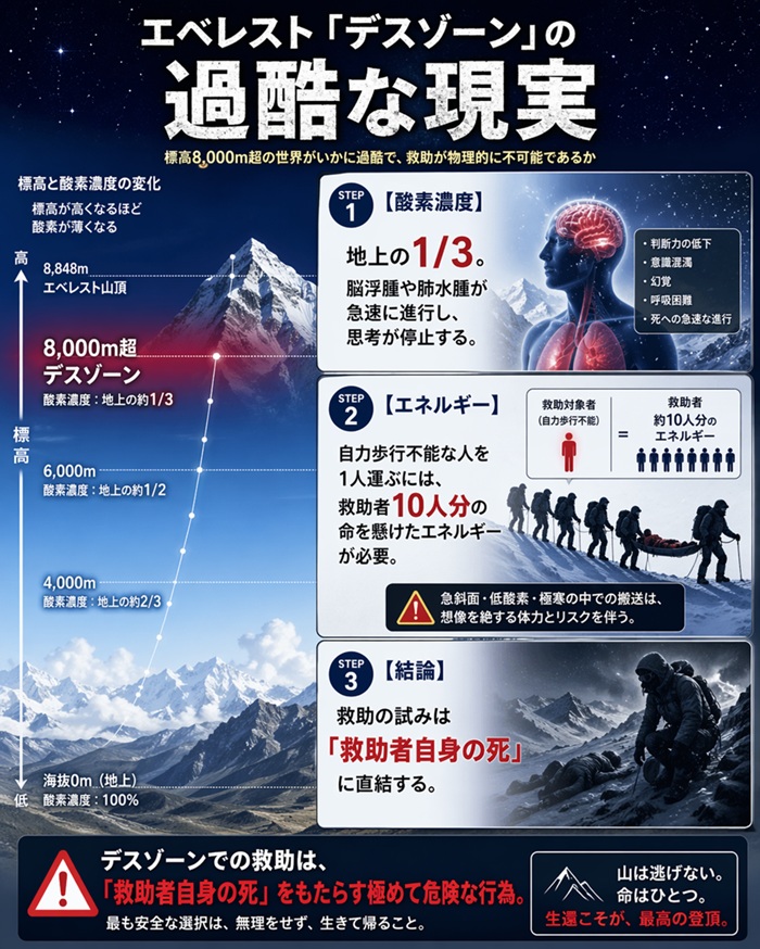 深夜、ふと目にした動画やSNSで「エベレストの道標にされる遺体」という言葉に足が止まりませんでしたか?