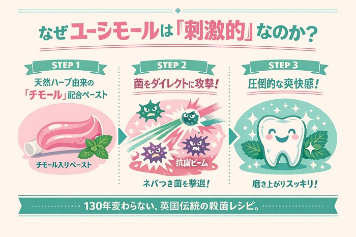 なぜなら、多くの人が「刺激=口に合わない」と即座に判断して使用を止めてしまいますが、チモールの殺菌効果による爽快感は、一度慣れると他の歯磨き粉では物足りなくなるほど中毒性が高いからです。この「刺激の正体」を知るだけで、最初の3日間のハードルがぐっと下がります。