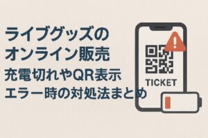 「入場ゲートの前で、急に画面が固まった…」 「あと10分で開演なのに、充電が切れてスマホが起動しない!」 想像するだけで冷や汗が出るシチュエーションですが、これはデジチケ導入以降、どの会場でも必ず起きているリアルな悲劇です。 特に嵐のようなドームクラスの公演では、数万人が一箇所に集中するため、電波状況は最悪。 普段通りにスマホが使えると思ってはいけません。 この記事では、デジチケ入場で起こりうる「 … 続きを読む デジタルチケット(デジチケ)で入場トラブル?充電切れやQR表示エラー時の対処法まとめ